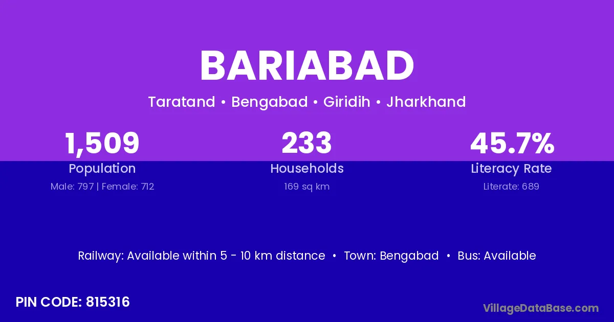 According to Census 2011 information, the village code of Bariabad village is 814146.