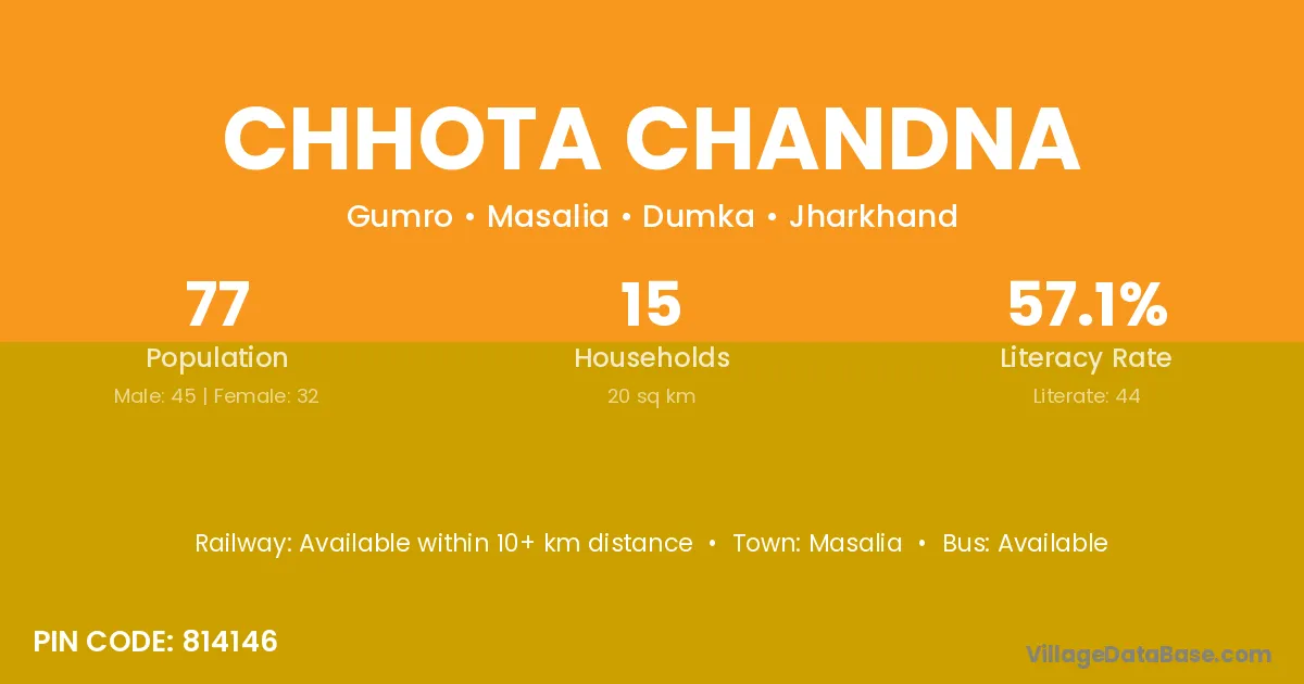 Chhota Chandna village has a total population of 77 people, of which 45 are males and 32 are females.