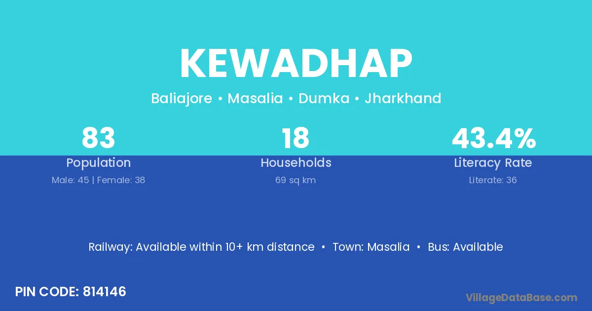 Kewadhap village has a total population of 83 people, of which 45 are males and 38 are females.