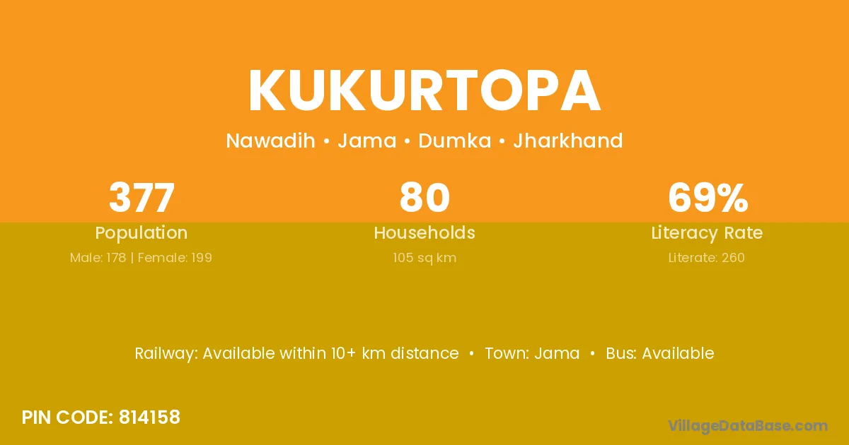 Dumka is the nearest town to Kukurtopa village for major economic activities