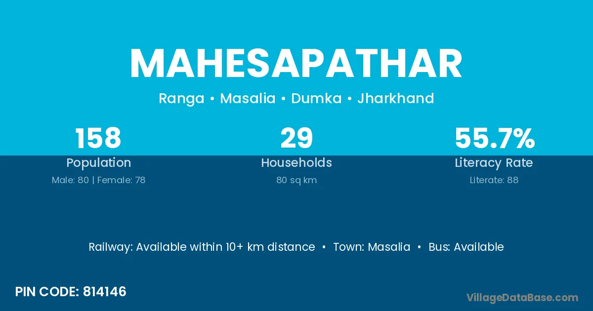 Mahesapathar village has a total population of 158 people, of which 80 are males and 78 are females.