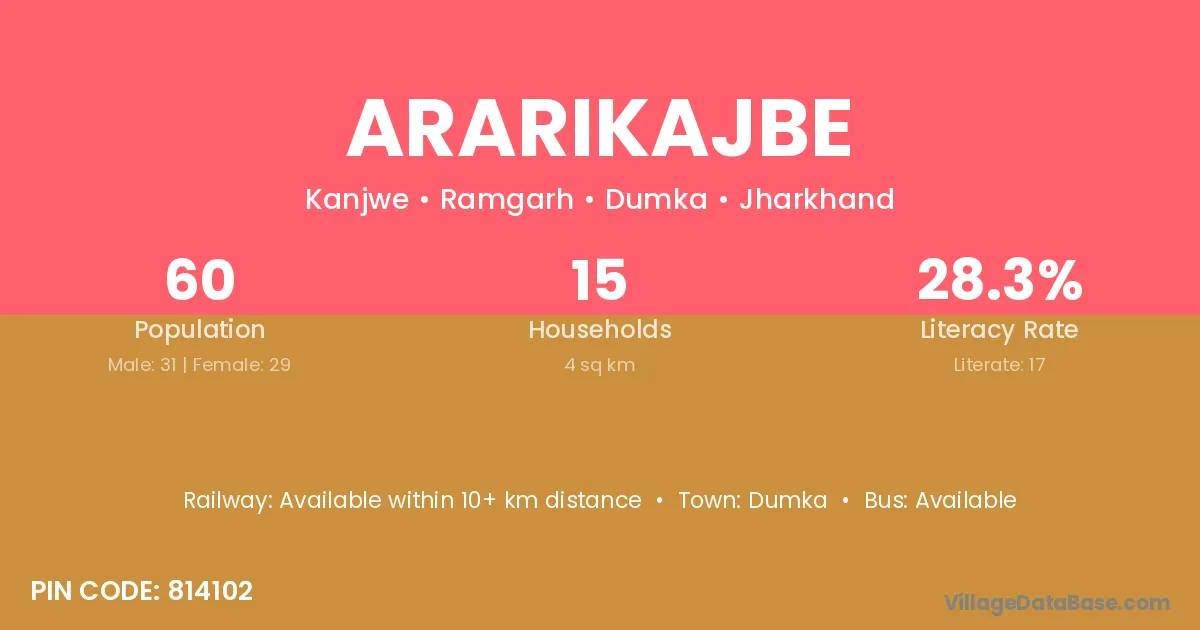 Dumka is the nearest town to Ararikajbe village for major economic activities