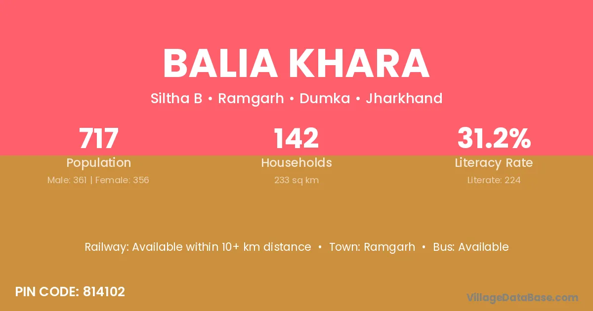 Balia Khara village has a total population of 717 people, of which 361 are males and 356 are females.