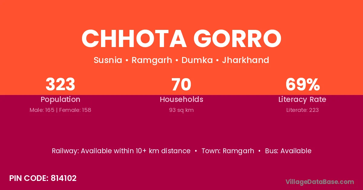 Chhota Gorro village has a total population of 323 people, of which 165 are males and 158 are females.