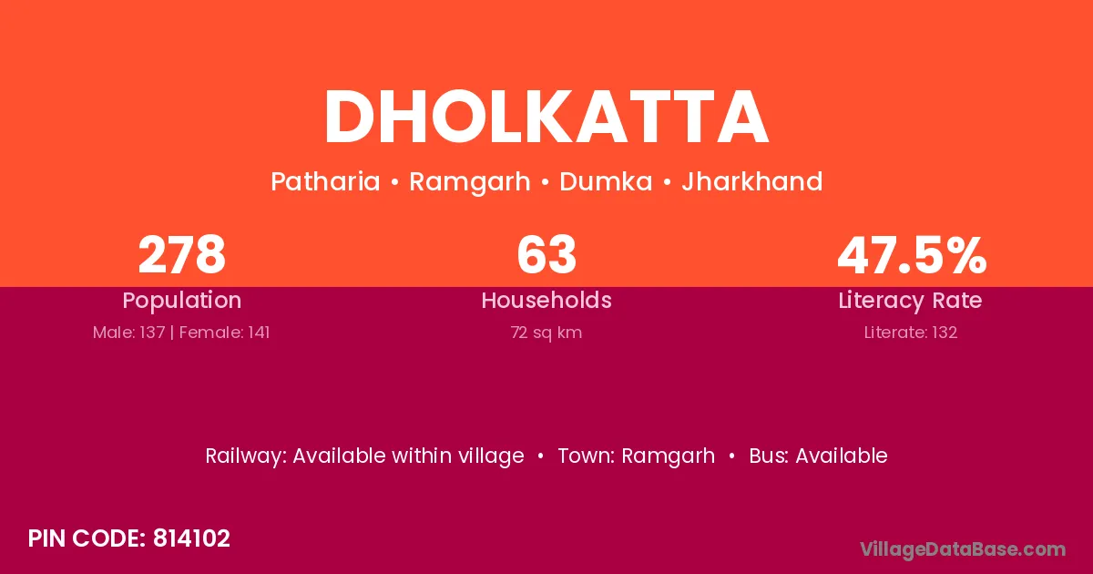 Ramgarh is the nearest town to Dholkatta village for major economic activities