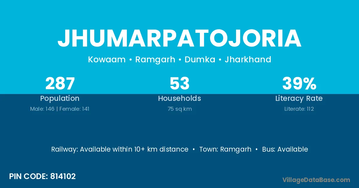 Jhumarpatojoria village has a total population of 287 people, of which 146 are males and 141 are females.