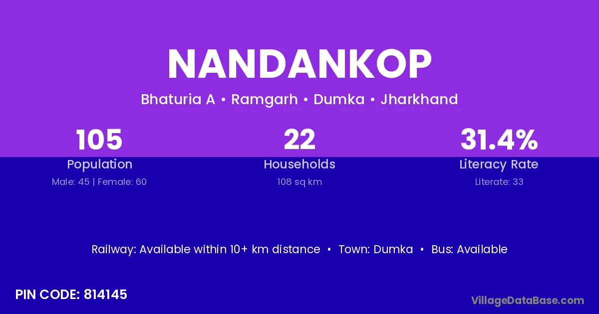 Nandankop village has a total population of 105 people, of which 45 are males and 60 are females.