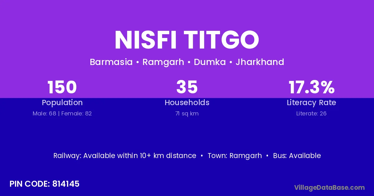 Ramgarh is the nearest town to Nisfi Titgo village for major economic activities