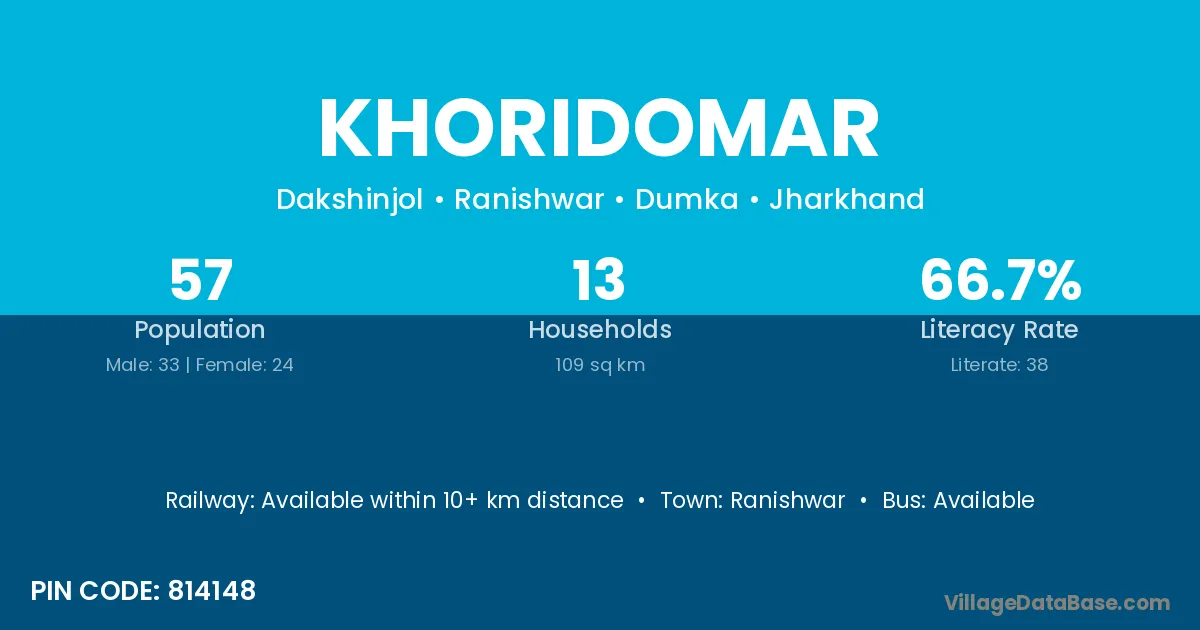 Khoridomar village has a total population of 57 people, of which 33 are males and 24 are females.