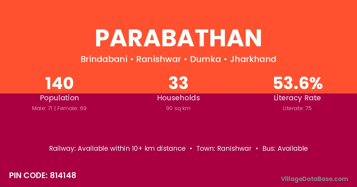 Parabathan village has a total population of 140 people, of which 71 are males and 69 are females.