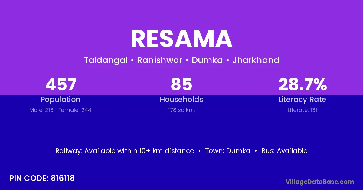 Dumka is the nearest town to Resama village for major economic activities
