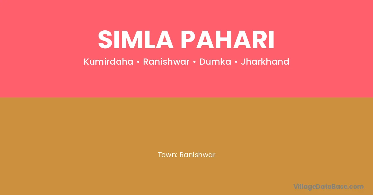 Simla Pahari village is located in the Ranishwar Subdivision of the Dumka district in Jharkhand .