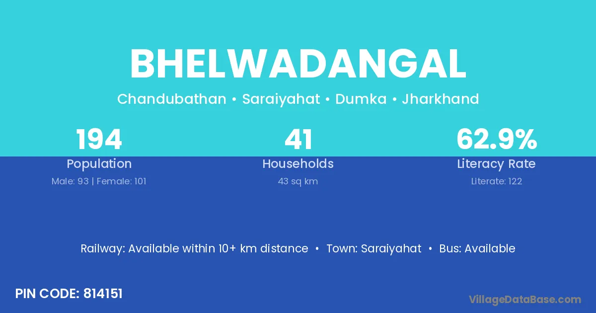 Bhelwadangal village has a total population of 194 people, of which 93 are males and 101 are females.