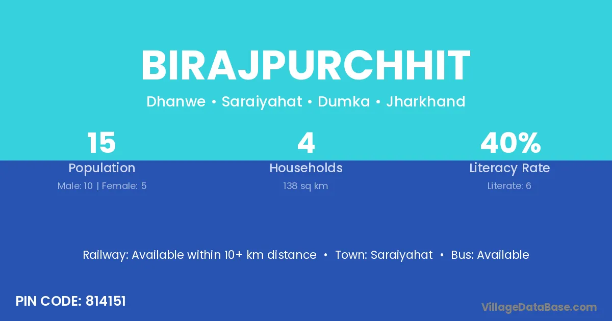 Birajpurchhit village has a total population of 15 people, of which 10 are males and 5 are females.