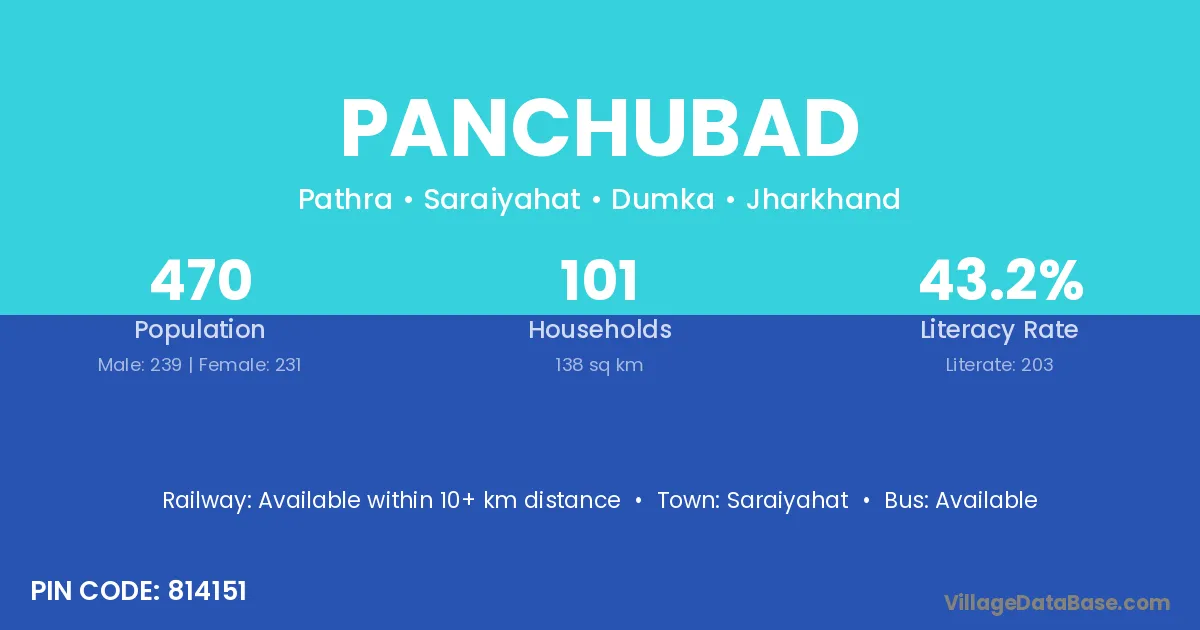 Panchubad village has a total population of 470 people, of which 239 are males and 231 are females.