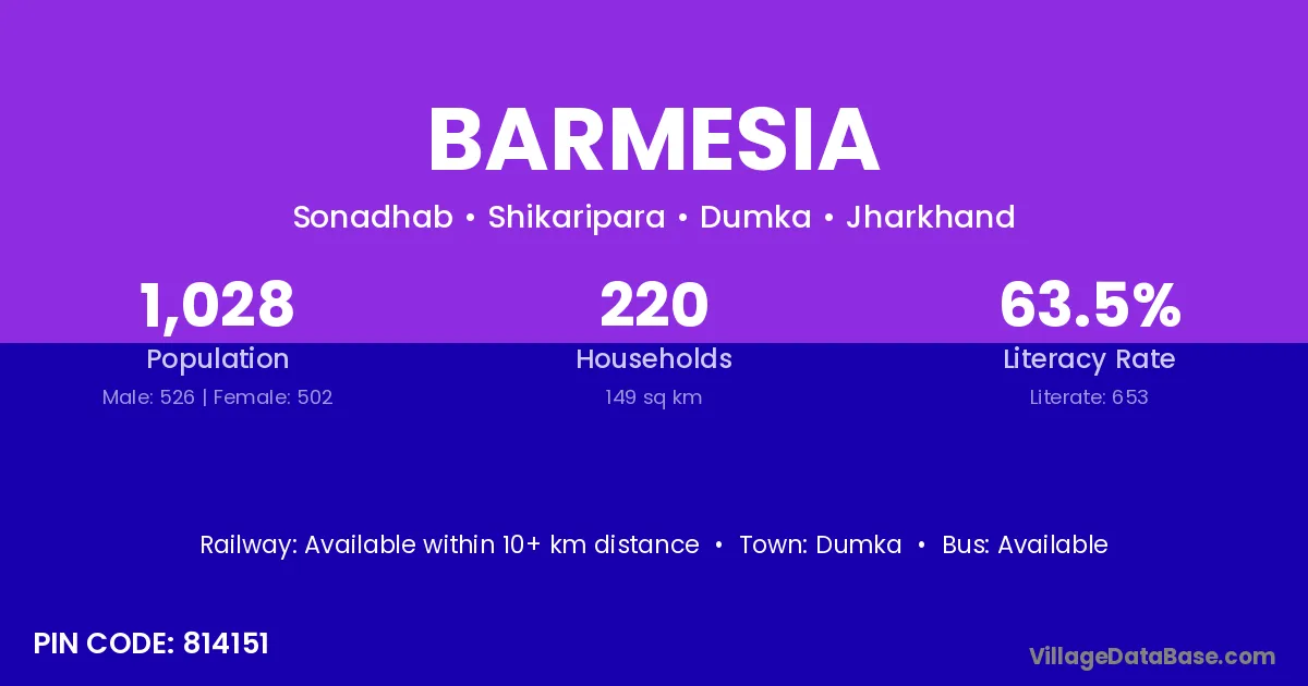 Dumka is the nearest town to Barmesia village for major economic activities