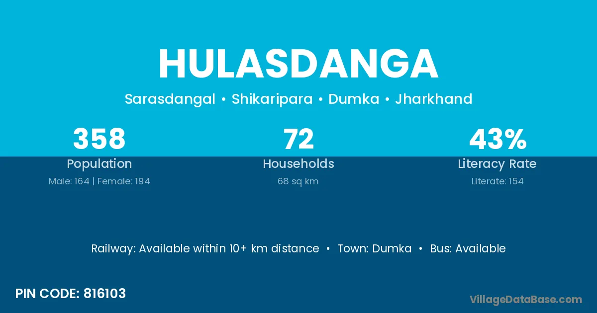 Hulasdanga village has a total population of 358 people, of which 164 are males and 194 are females.