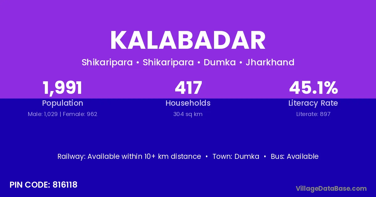 Dumka is the nearest town to Kalabadar village for major economic activities