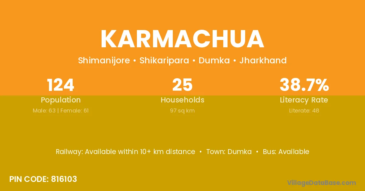 Karmachua village has a total population of 124 people, of which 63 are males and 61 are females.