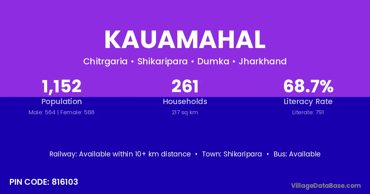 Kauamahal village has a total population of 1,152 people, of which 564 are males and 588 are females.