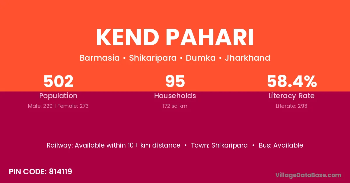 Kend Pahari village has a total population of 502 people, of which 229 are males and 273 are females.