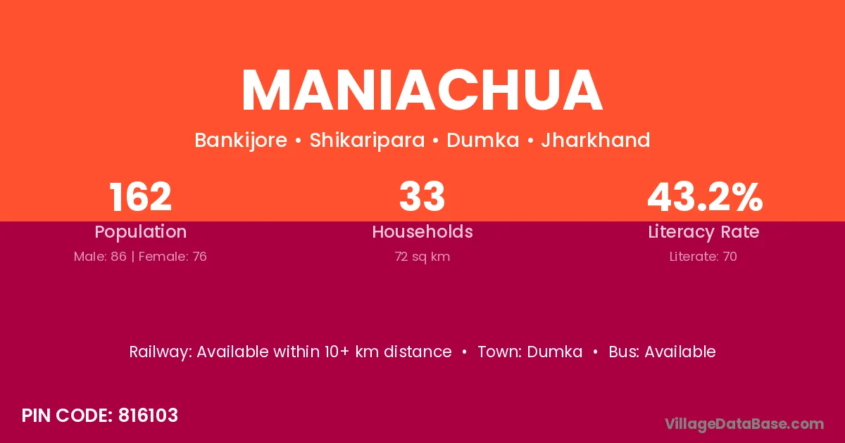 Dumka is the nearest town to Maniachua village for major economic activities