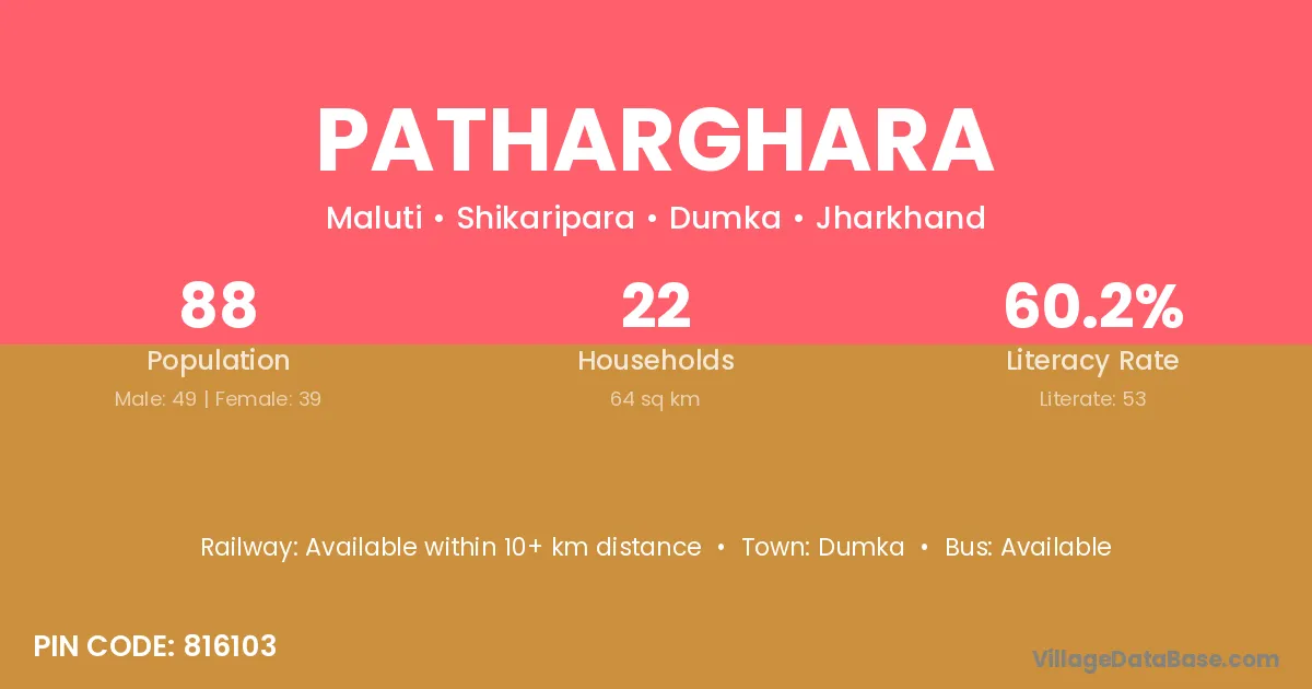 Dumka is the nearest town to Patharghara village for major economic activities