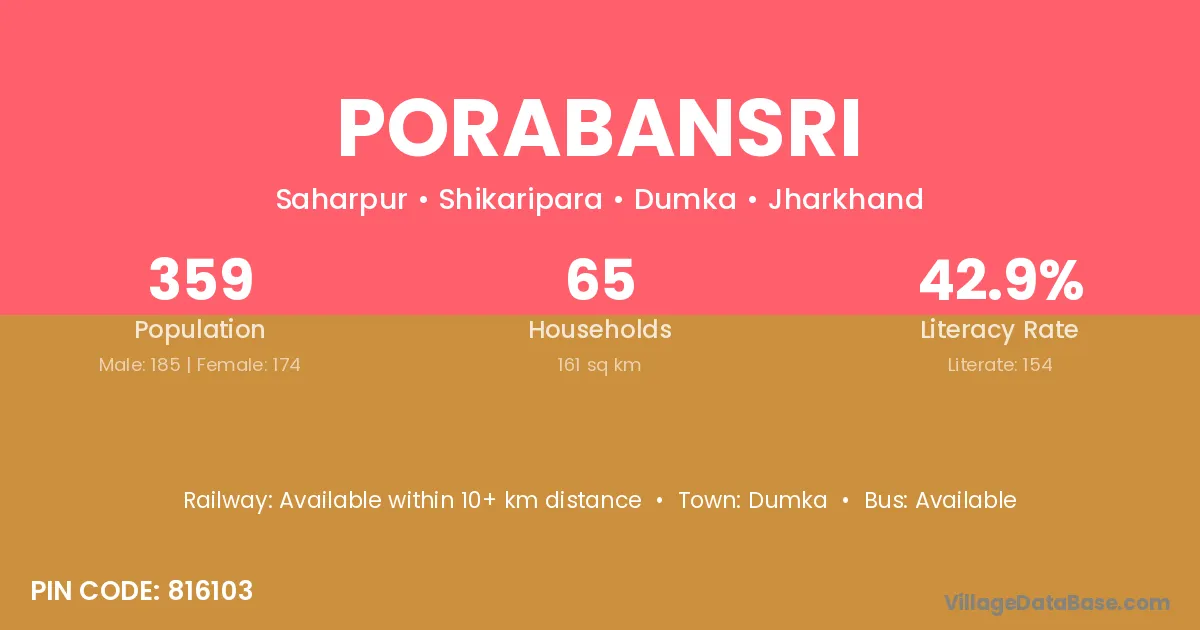 Dumka is the nearest town to Porabansri village for major economic activities