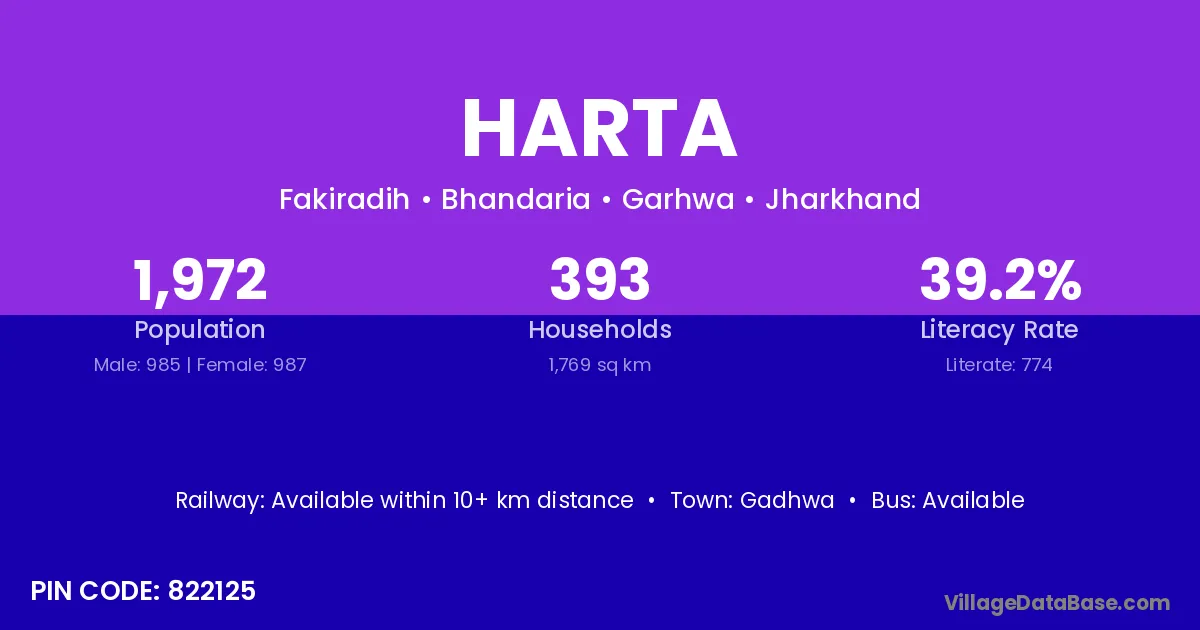 According to Census 2011 information, the village code of Harta village is 822125.