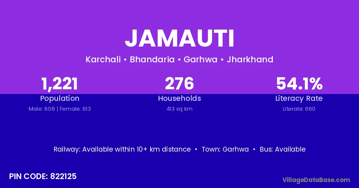 Jamauti village has a total population of 1,221 people, of which 608 are males and 613 are females.
