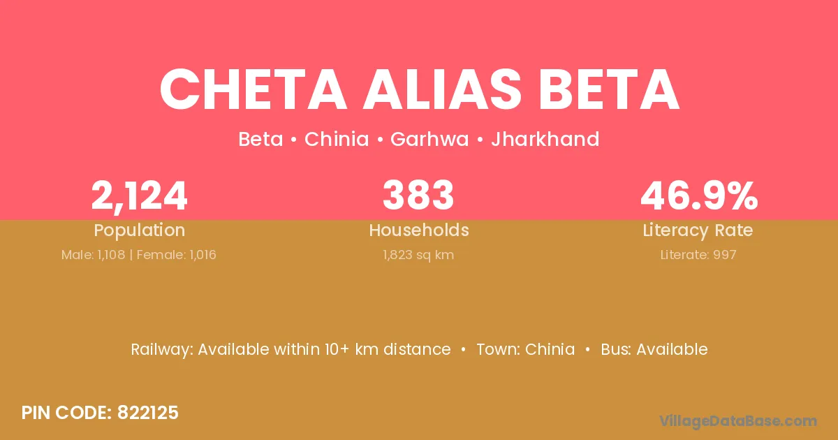 Cheta Alias Beta village is located in the Chinia Subdivision of the Garhwa district in Jharkhand .