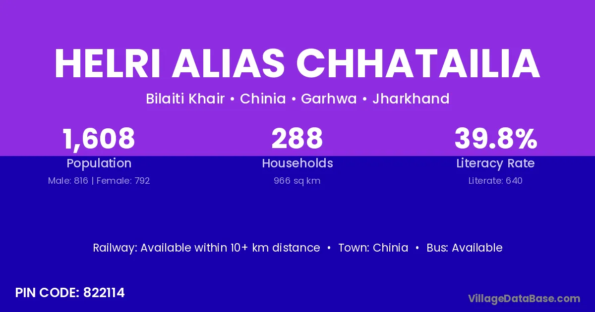 Helri Alias Chhatailia village has a total population of 1,608 people, of which 816 are males and 792 are females.