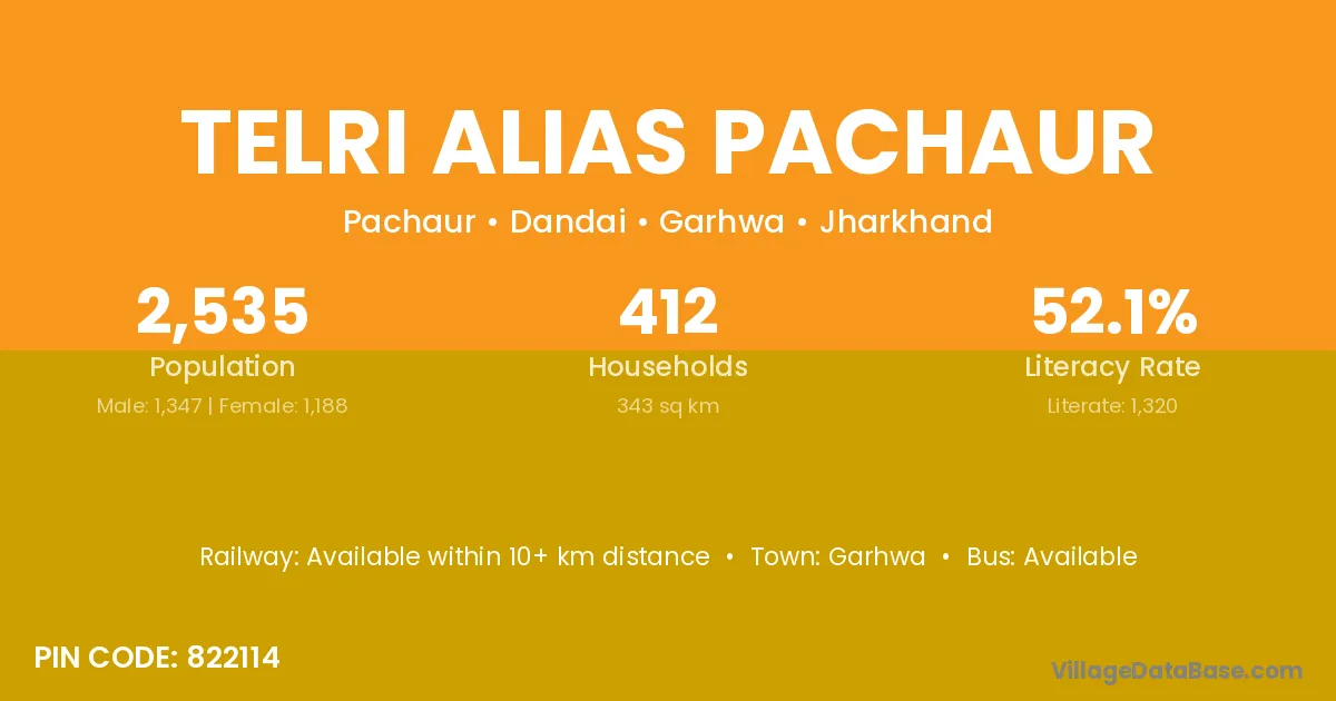 Telri Alias Pachaur village has a total population of 2,535 people, of which 1,347 are males and 1,188 are females.