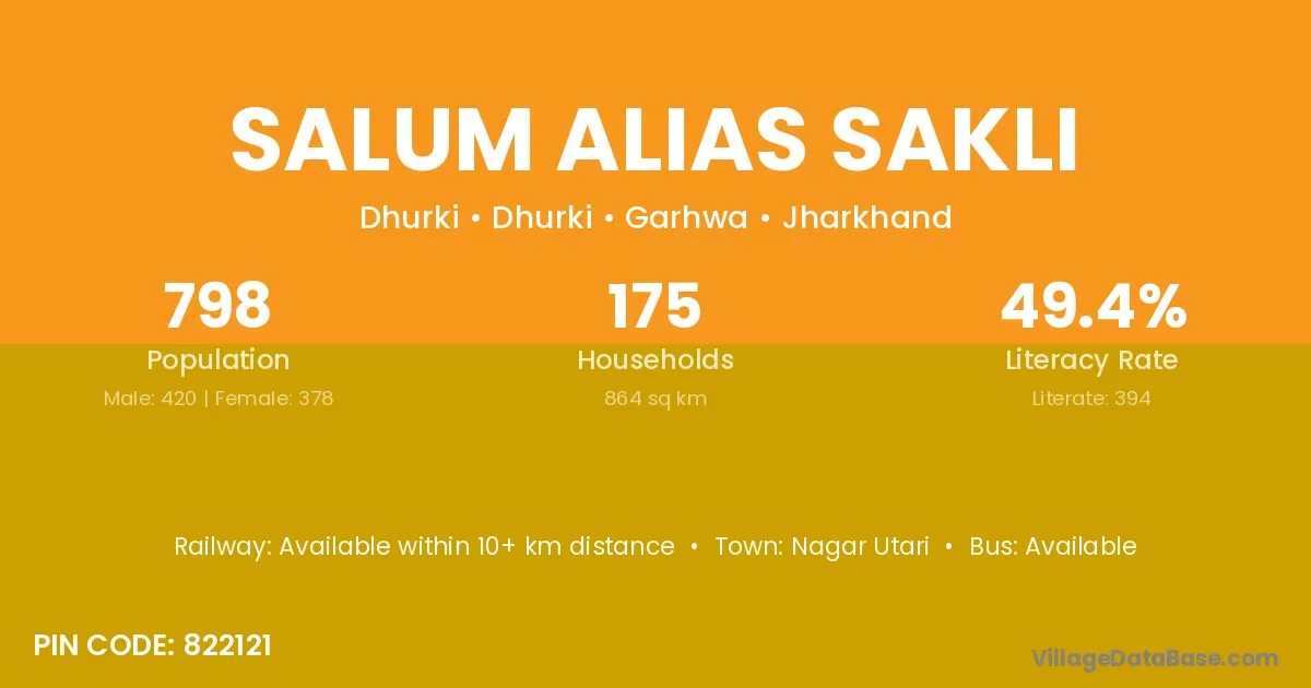 Salum Alias Sakli village has a total population of 798 people, of which 420 are males and 378 are females.