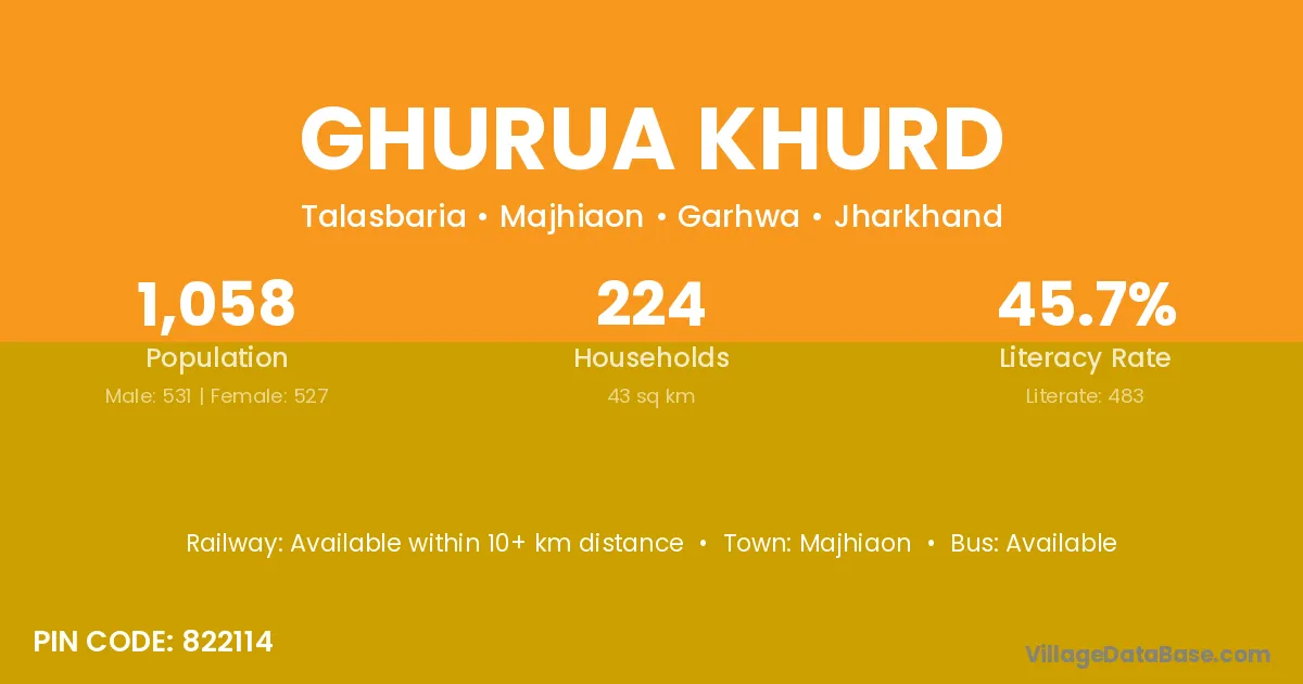 Ghurua Khurd village has a total population of 1,058 people, of which 531 are males and 527 are females.