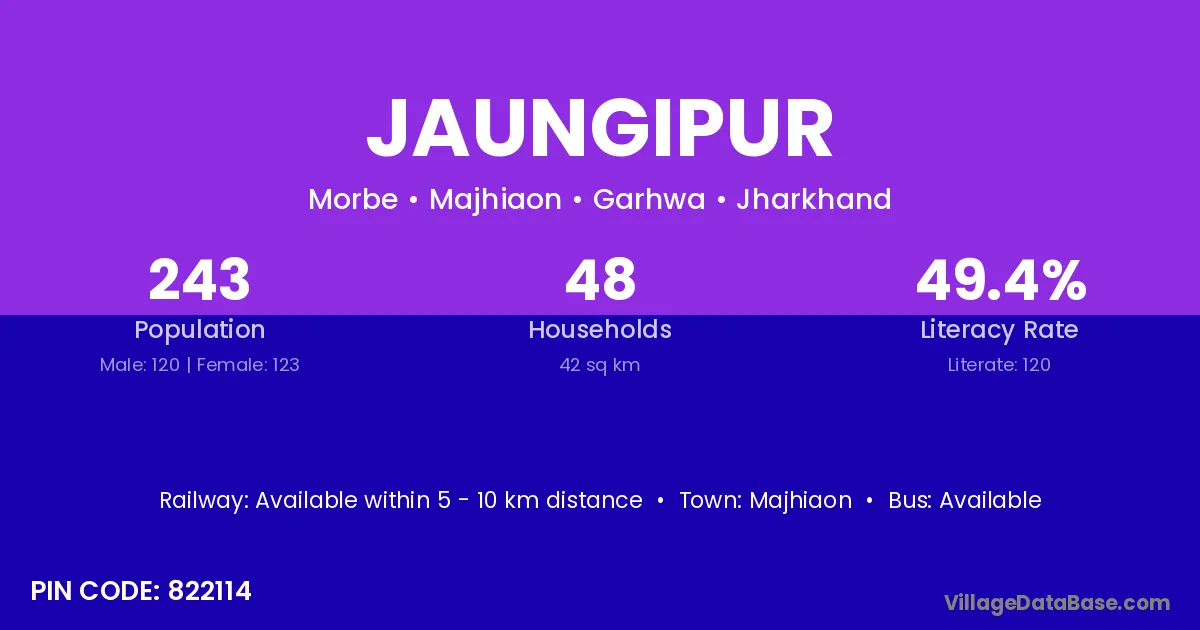 Jaungipur village has a total population of 243 people, of which 120 are males and 123 are females.