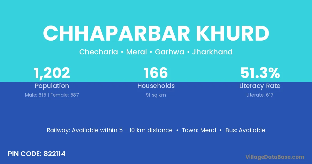 Chhaparbar Khurd village has a total population of 1,202 people, of which 615 are males and 587 are females.