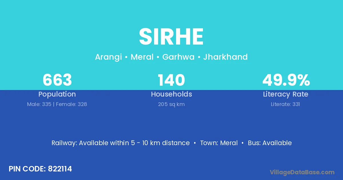 Sirhe village has a total population of 663 people, of which 335 are males and 328 are females.