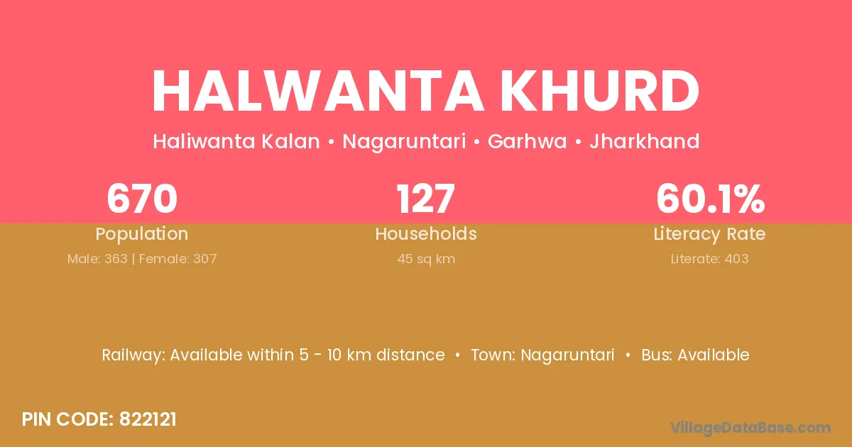 Halwanta Khurd village has a total population of 670 people, of which 363 are males and 307 are females.