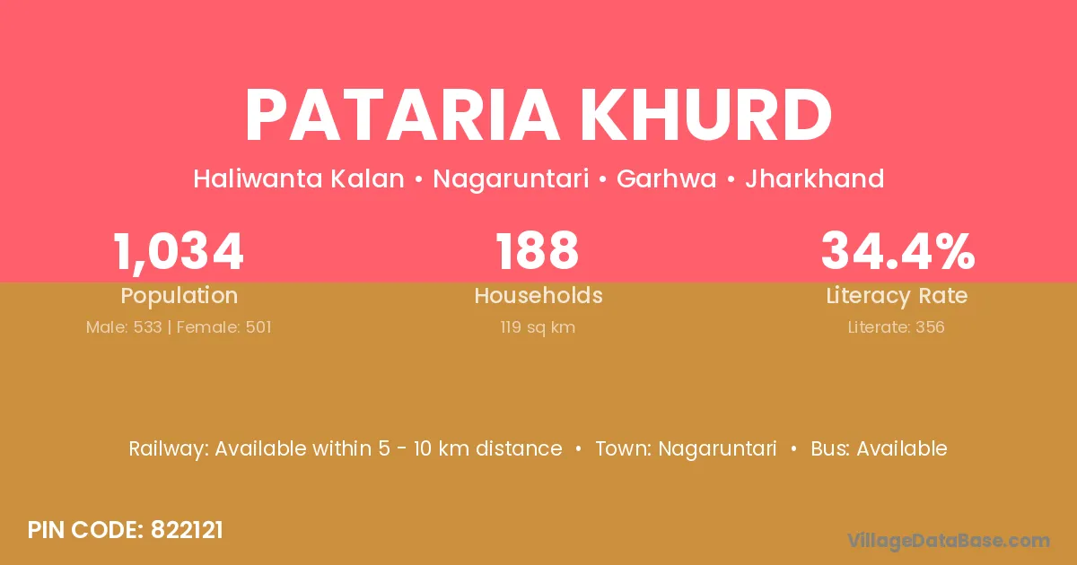 Pataria Khurd village has a total population of 1,034 people, of which 533 are males and 501 are females.