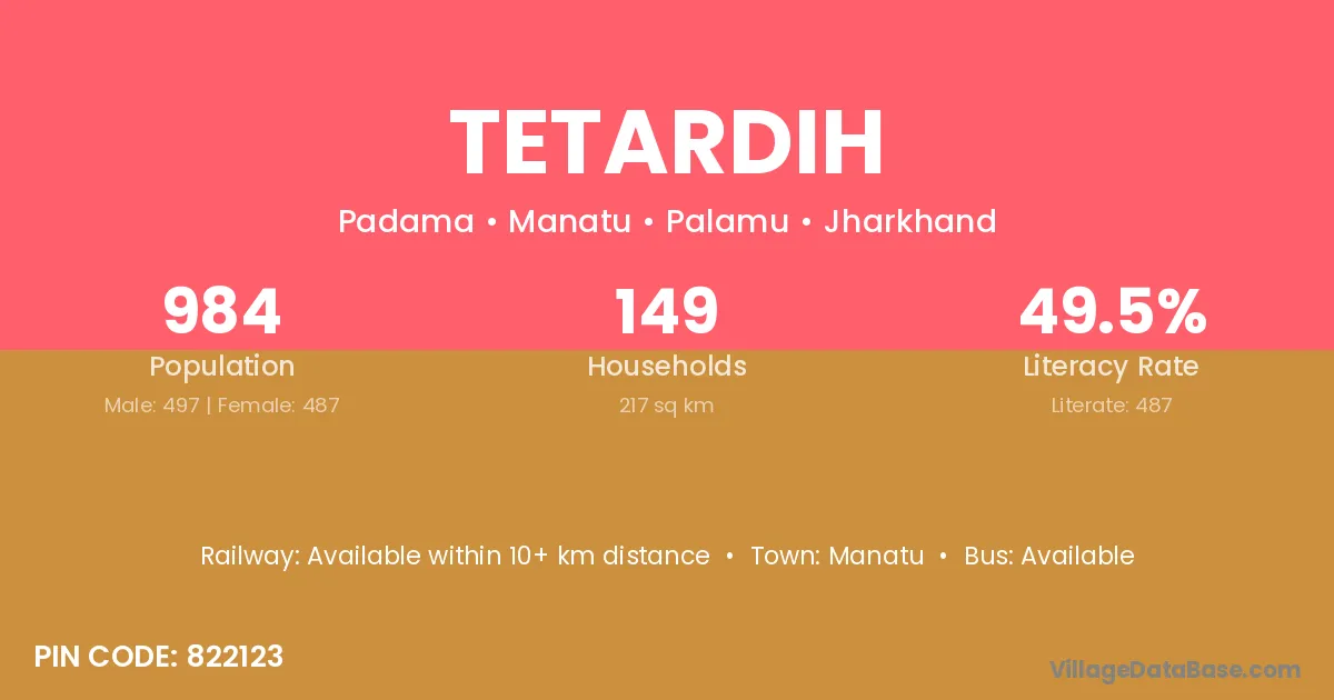 According to Census 2011 information, the village code of Tetardih village is 822125.