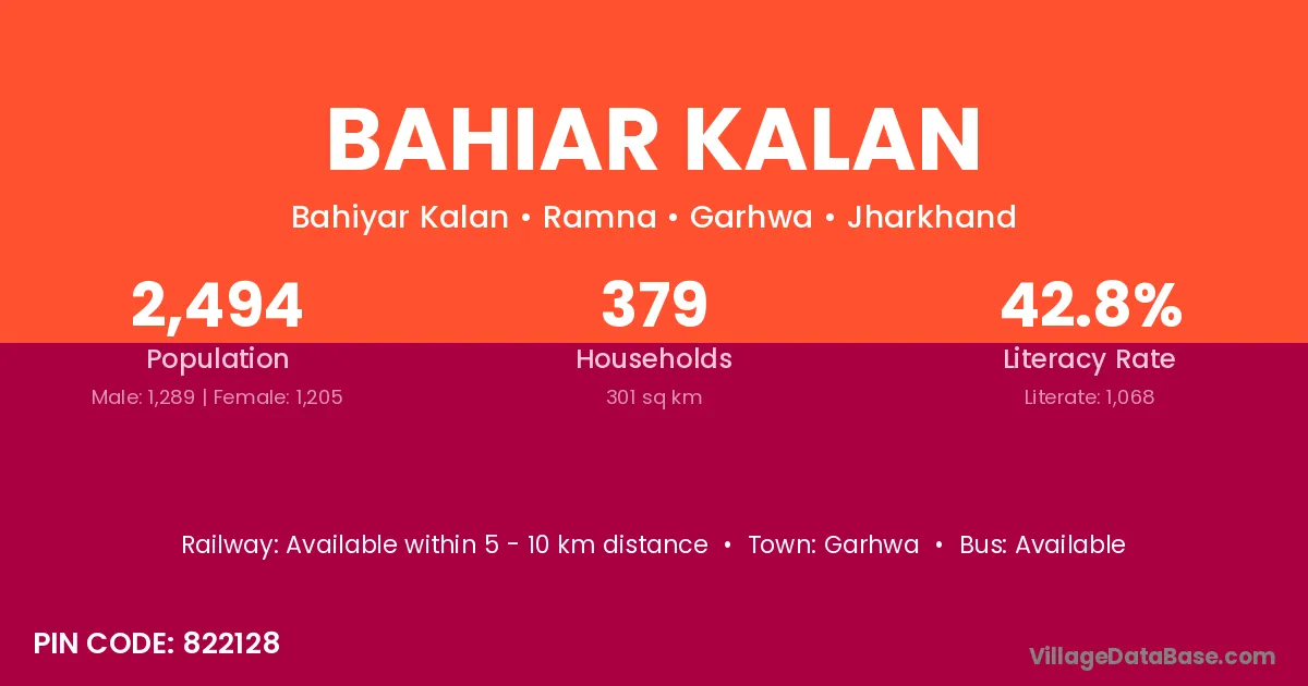 Garhwa is the nearest town to Bahiar Kalan village for major economic activities