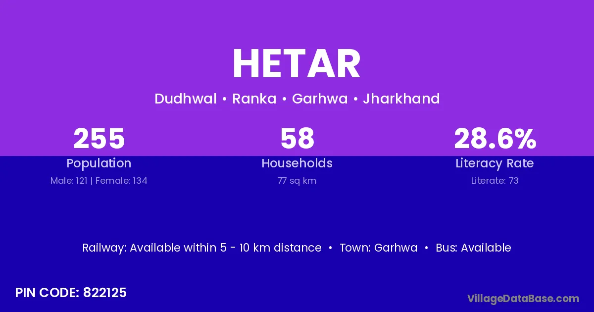 Garhwa is the nearest town to Hetar village for major economic activities