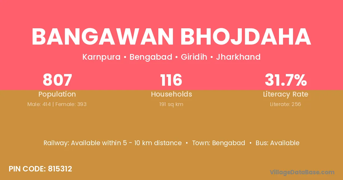 Bangawan Bhojdaha village has a total population of 807 people, of which 414 are males and 393 are females.