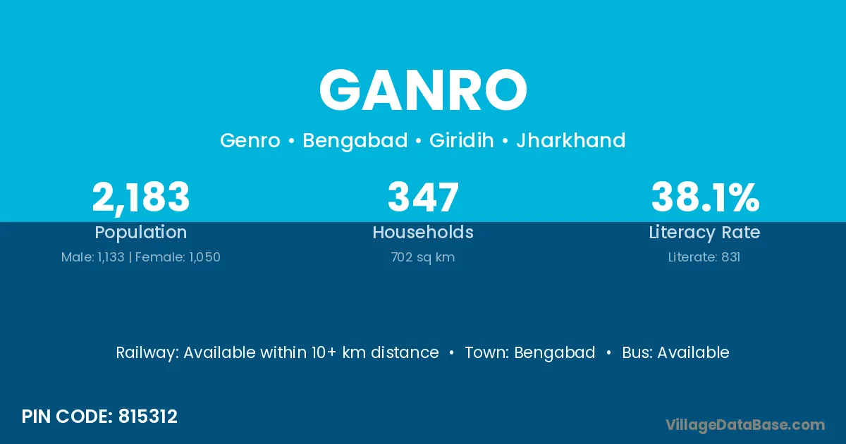 The literacy rate of Ganro village is 38.07%. Male literacy stands at 49.78% and female literacy at 25.43%.