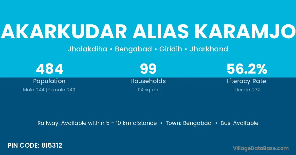 Kakarkudar Alias Karamjor village has a total population of 484 people, of which 244 are males and 240 are females.