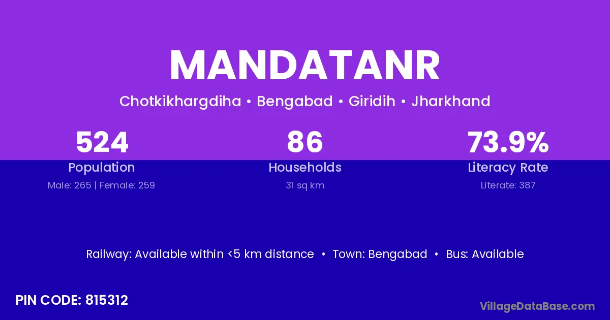 According to Census 2011 information, the village code of Mandatanr village is 815312.