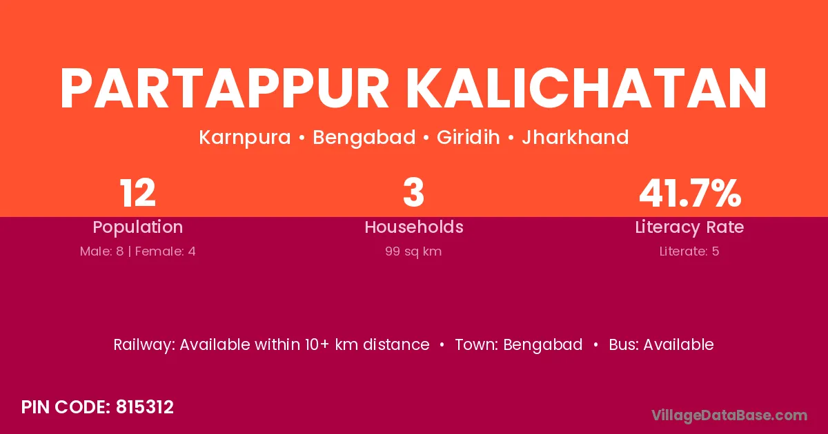 Partappur Kalichatan village has a total population of 12 people, of which 8 are males and 4 are females.
