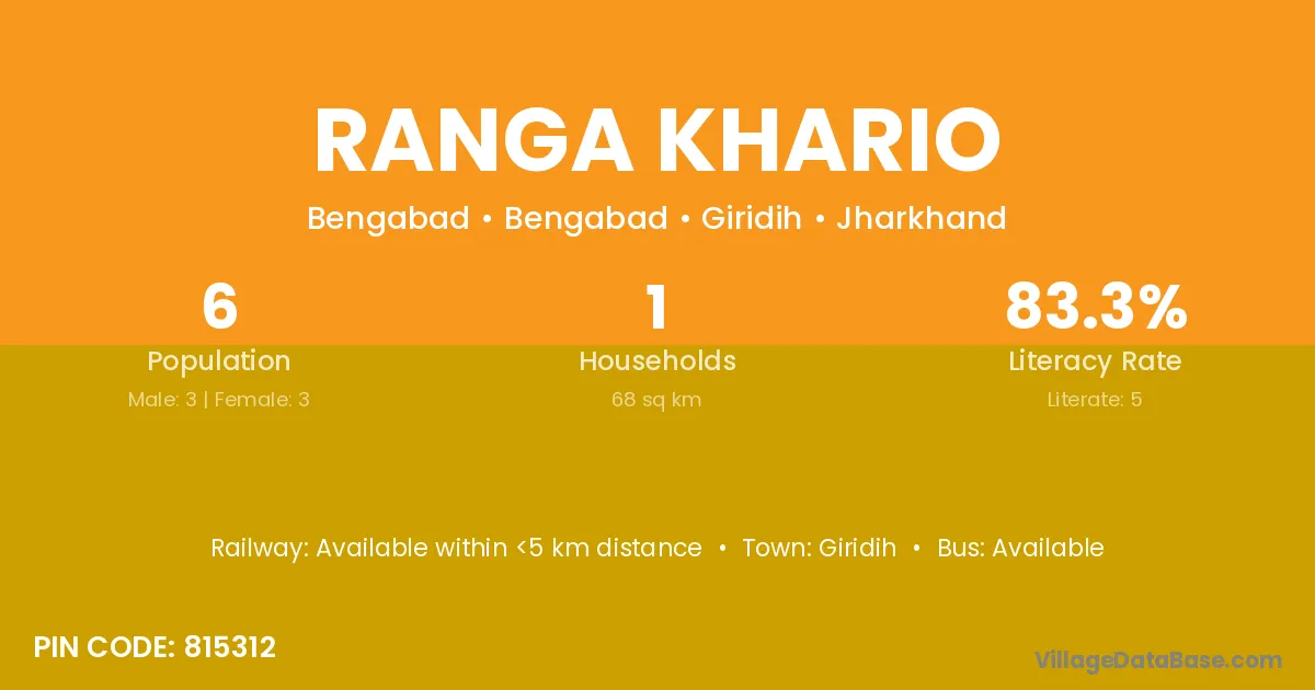 Ranga Khario village has a total population of 6 people, of which 3 are males and 3 are females.