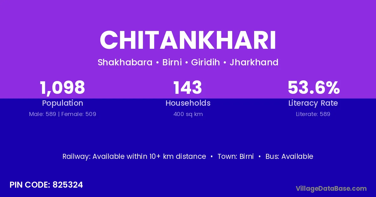 Chitankhari village has a total population of 1,098 people, of which 589 are males and 509 are females.